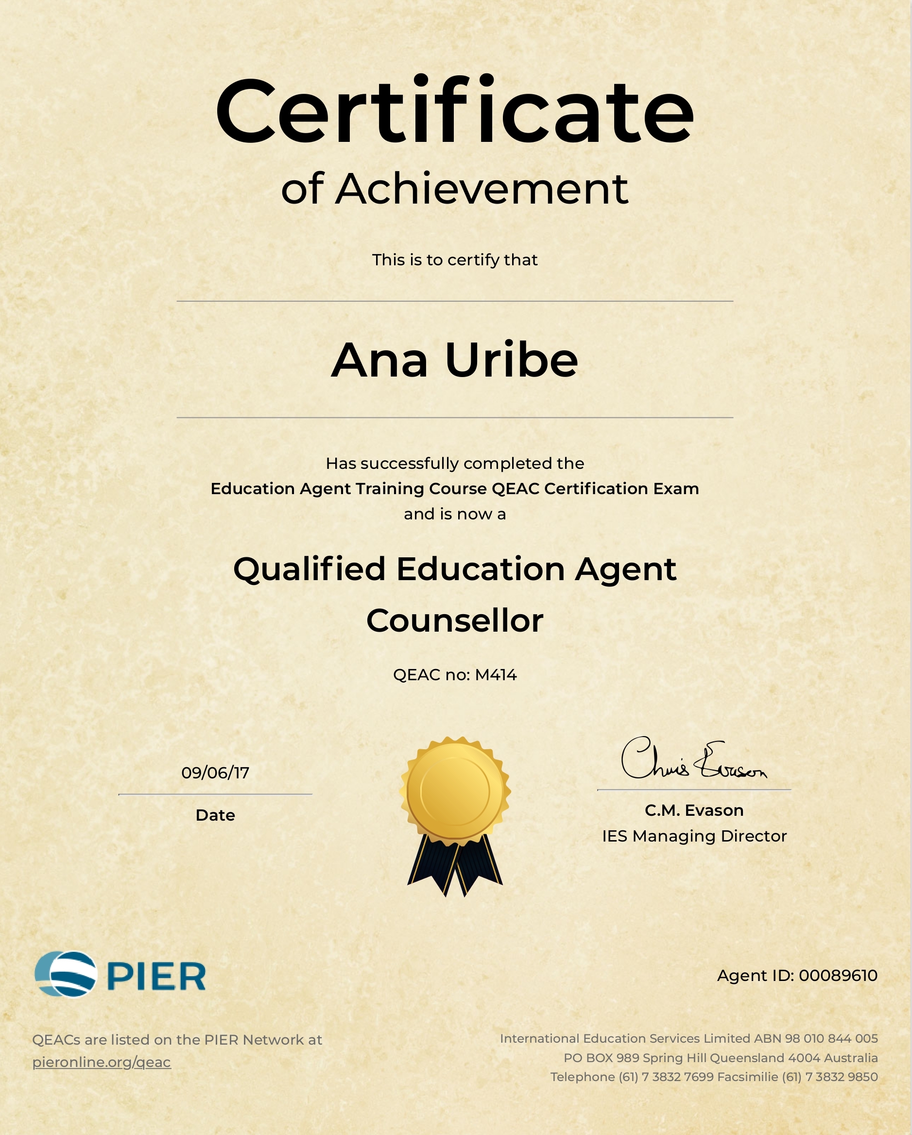 The whole team is preparing to be PIER - QEAC certified by the end of 2021 we will be NEAS certified before 2022 Ana is studying to become an Immigration Agent by 2022